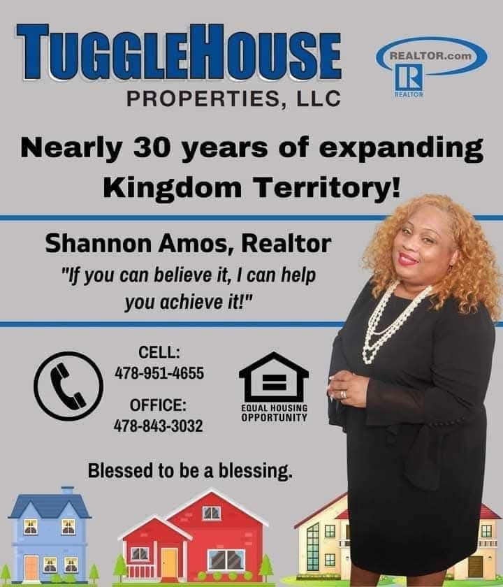 With nearly 30 years of real estate experience and a passion for Kingdom expansion, Shannon Amos, Realtor, is committed to helping individuals and families secure property, legacy, and peace of mind. Operating under TuggleHouse Properties, LLC, Shannon is dedicated to serving both first-time buyers and seasoned investors with excellence and integrity.